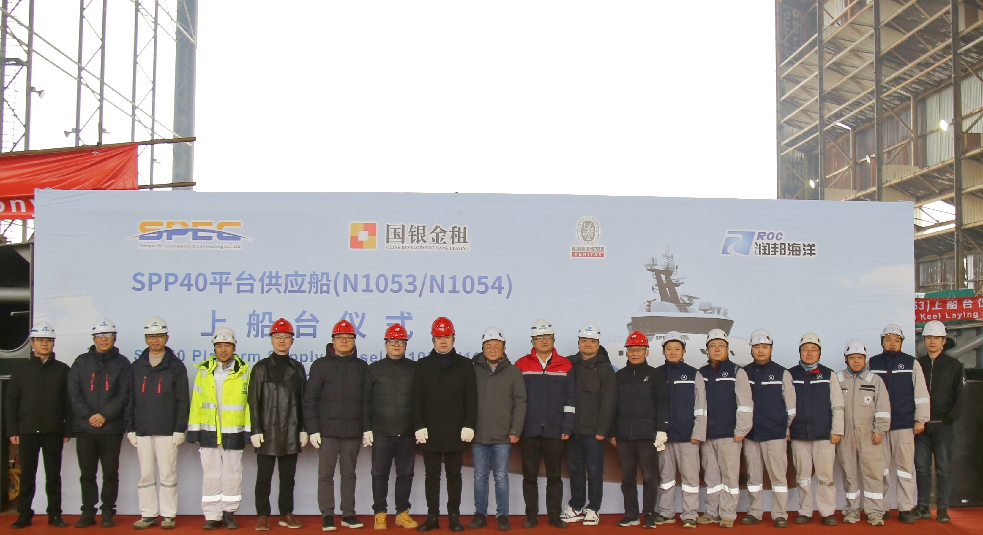2月12日,農(nóng)歷正月十五,正值元宵佳節(jié),子公司潤邦海洋建造2艘平臺(tái)供應(yīng)船SPP40同時(shí)舉行上船臺(tái)儀式,標(biāo)志著兩個(gè)項(xiàng)目的建造進(jìn)入了關(guān)鍵階段,實(shí)現(xiàn)2025年開門紅。N1053船于2024年10月開工,N1054船于同年11月開工,潤邦海洋項(xiàng)目組加快推進(jìn)項(xiàng)目生產(chǎn),統(tǒng)籌規(guī)劃,實(shí)現(xiàn)了2艘船比原計(jì)劃提前了兩個(gè)月同時(shí)上船臺(tái)這一重要節(jié)點(diǎn)。